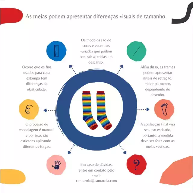 Ahhhhhh, nossas meias são super coloridas com muitas formas, desenhos, figuras e isso pode apresentar pequenas variações de entre um modelo e outro no tamanho aparente, todas as meias são produzidas para VESTIREM o pezinho, ou seja, quero dizer que se você escolheu com as dicas acima, não se preocupe! Vai ficar PERFEITA!